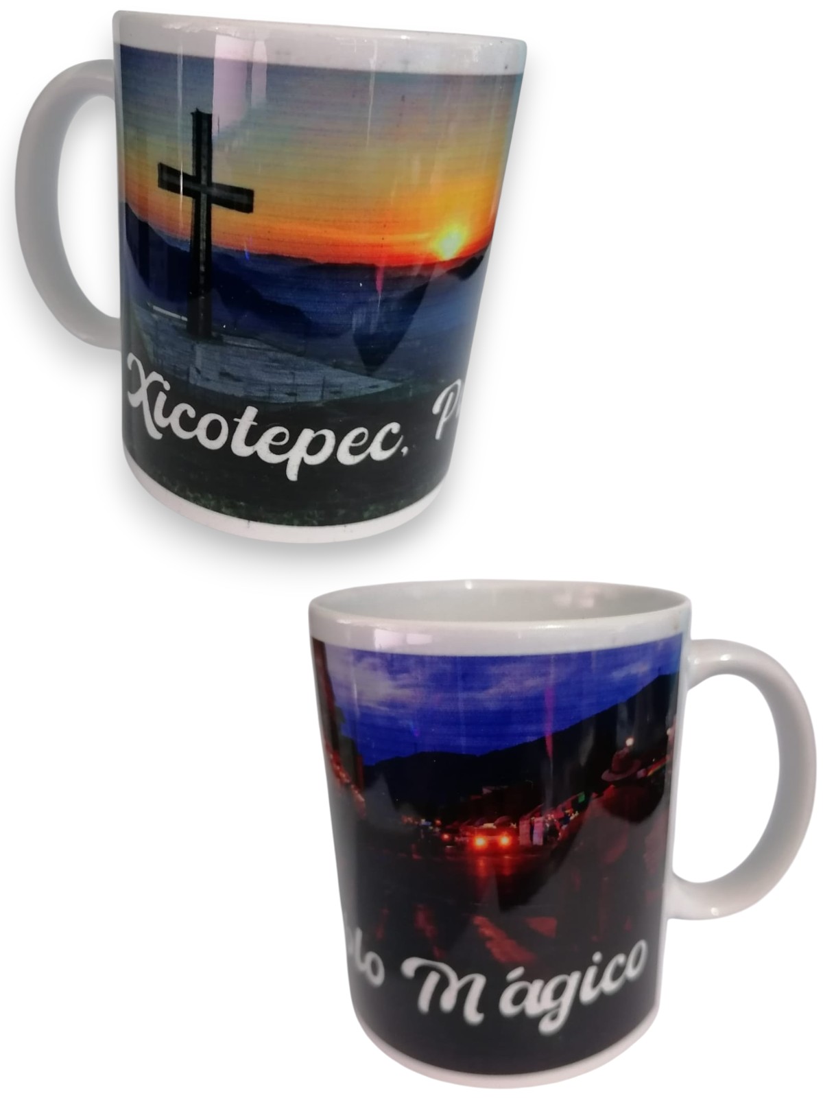 Taza de cerámica con diseño de la Cruz Celestial, ícono espiritual y cultural de Xicotepec. Un recuerdo especial que combina tradición y fe, ideal para coleccionar o disfrutar tu bebida favorita con un símbolo representativo de la región.